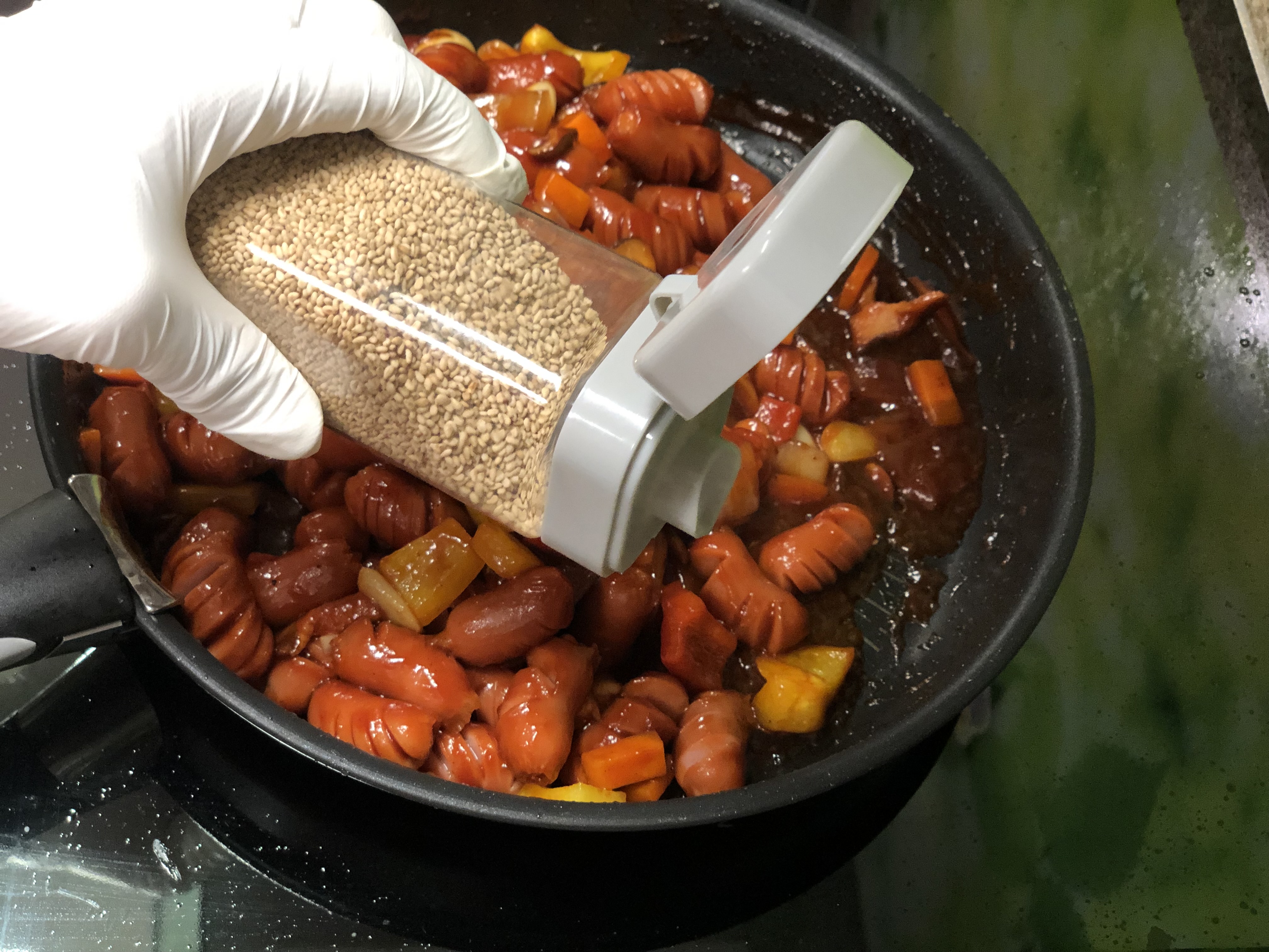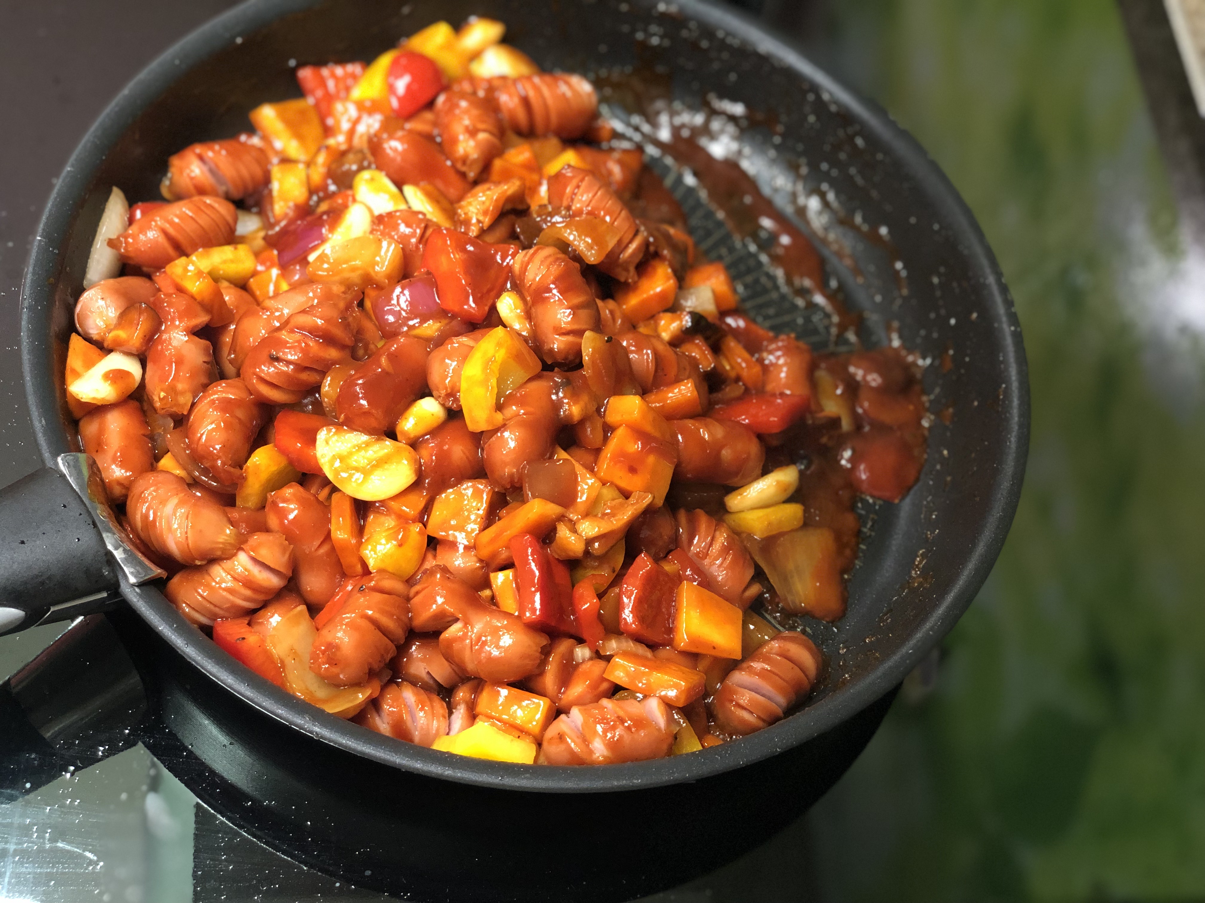 아이들 밥반찬으로, 어른들 술안주로 어디나 잘 어울리는 메뉴예요. 탱글한 소시지와 아삭한 야채, 달콤하면서 감칠맛 나는 양념이 입안을 가득 채워요.