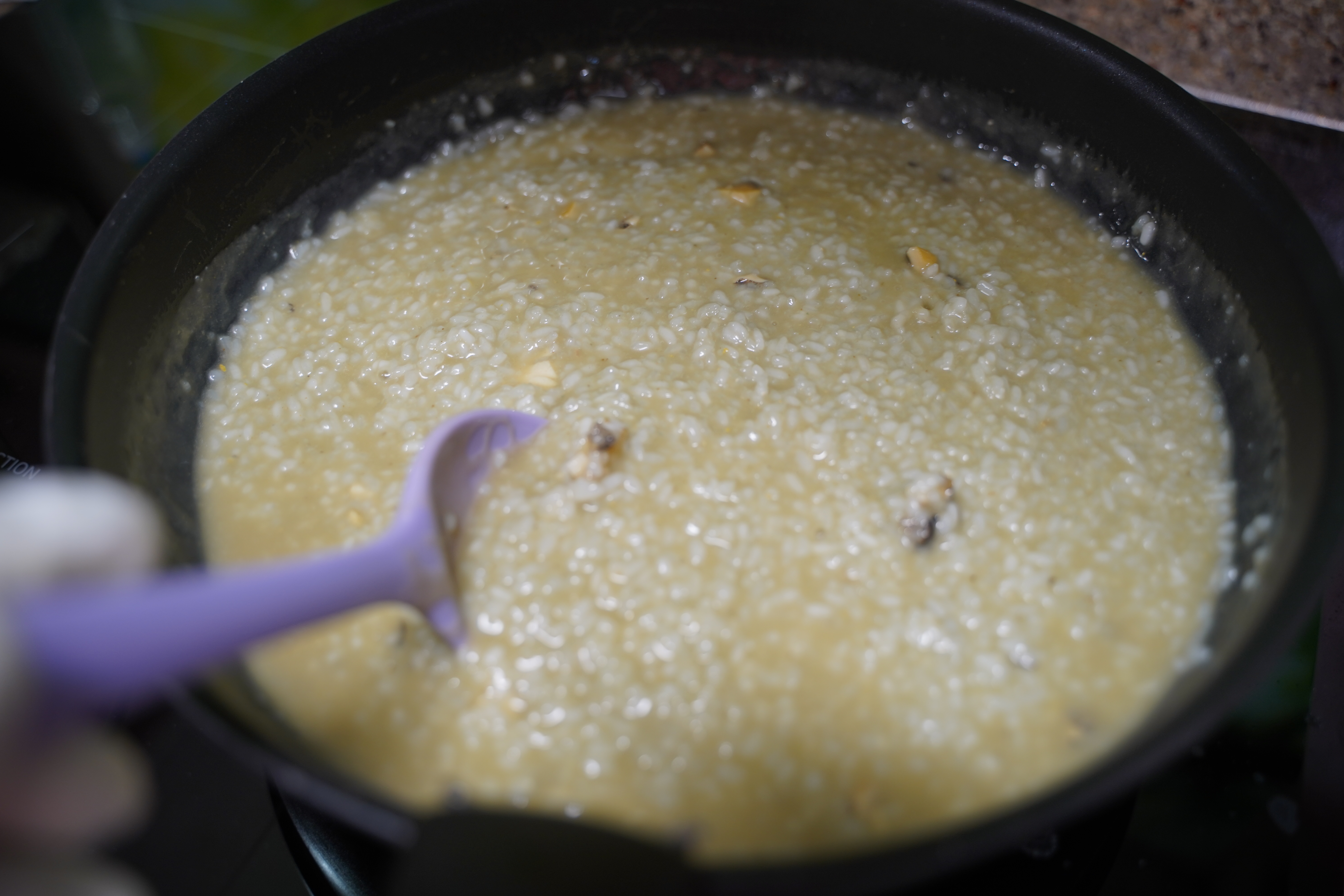 되직하면 육수를 조금씩 보충하며 밥알이 푹 퍼질 때까지 끓여줍니다.