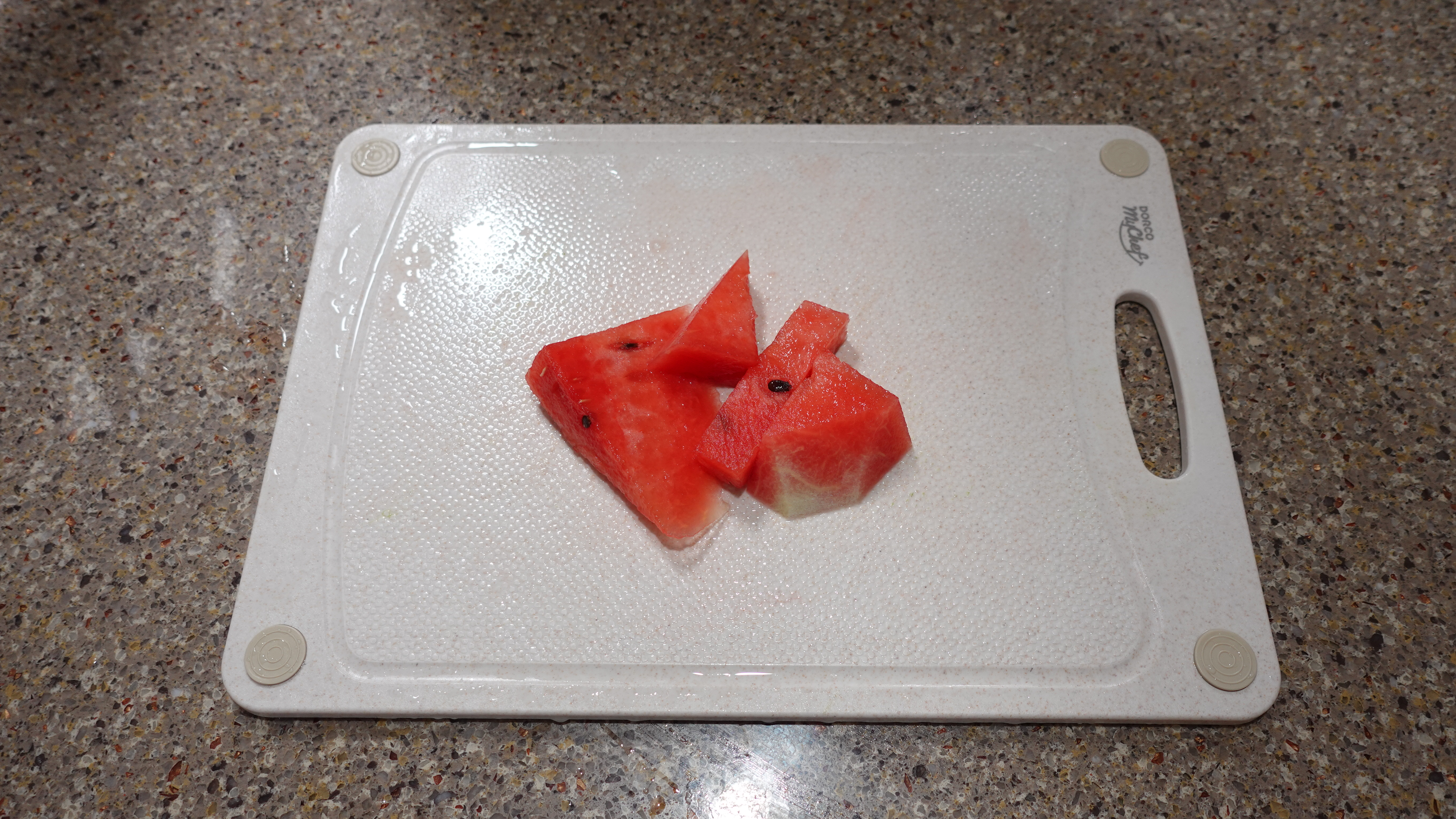 수박 손질하면서 단맛이 덜한 자투리 부분은 따로 빼두었어요.
