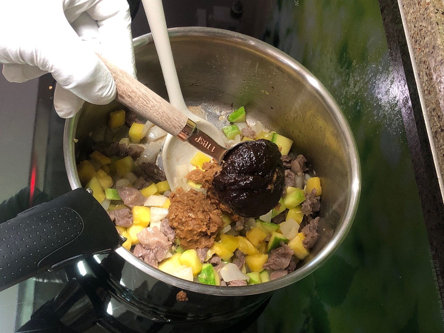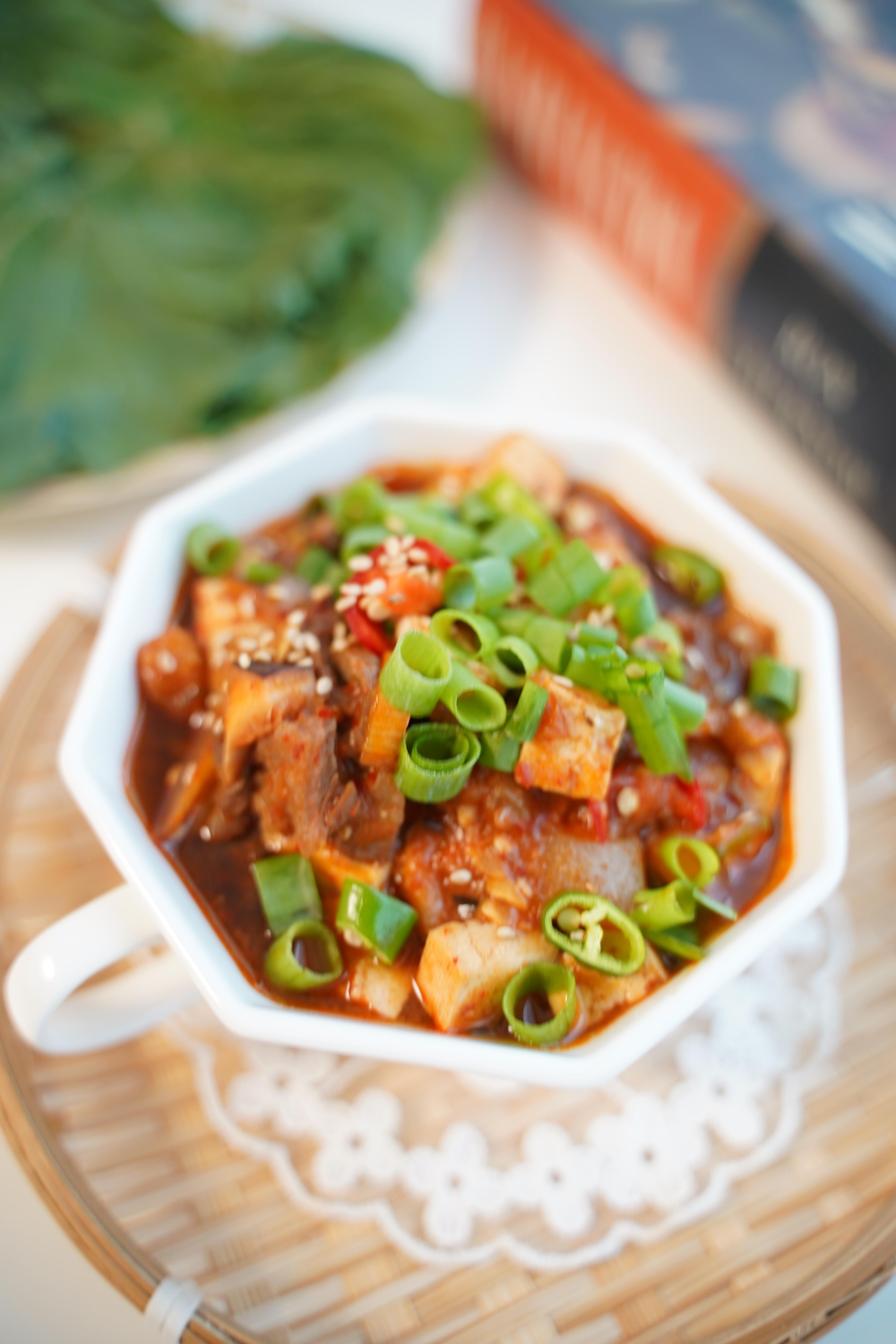소고기, 두부, 호박, 표고버섯을 듬뿍 넣어 자박하게 끓여내면 밥 한 그릇은 순삭이에요.