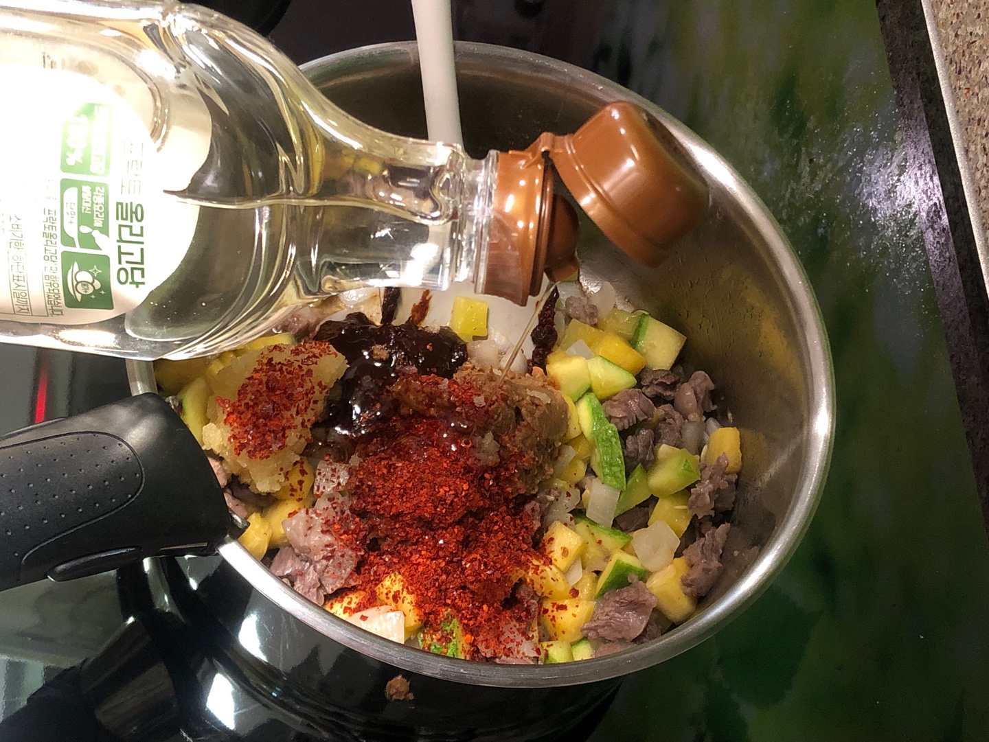 (야채 먼저 볶아 감칠맛을 끓어내고 소고기는 뒤에 넣는 게 포인트!)