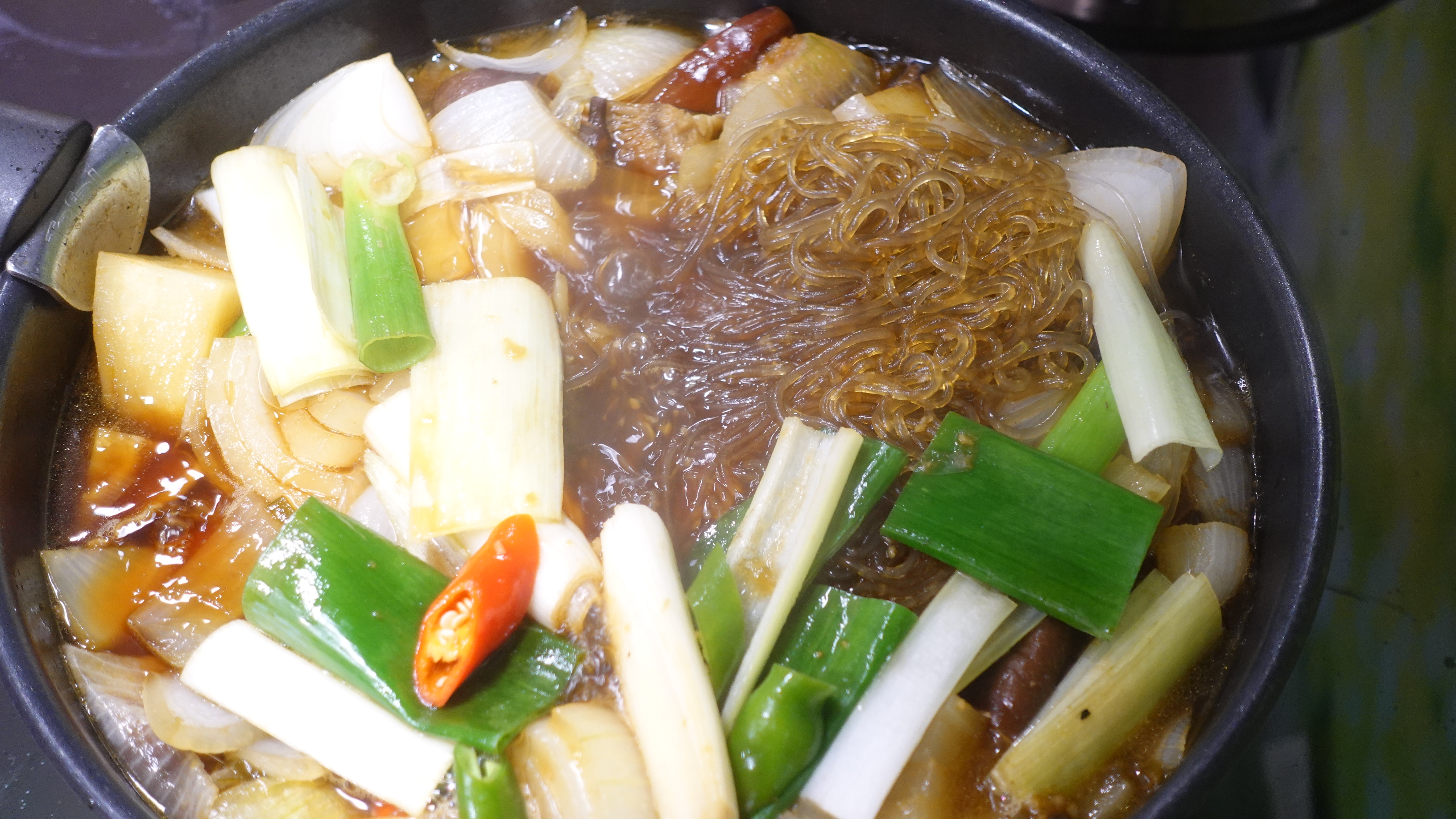 단짠단짠 국물에 감자, 고기, 당면까지 고루 즐길 수 있어요.