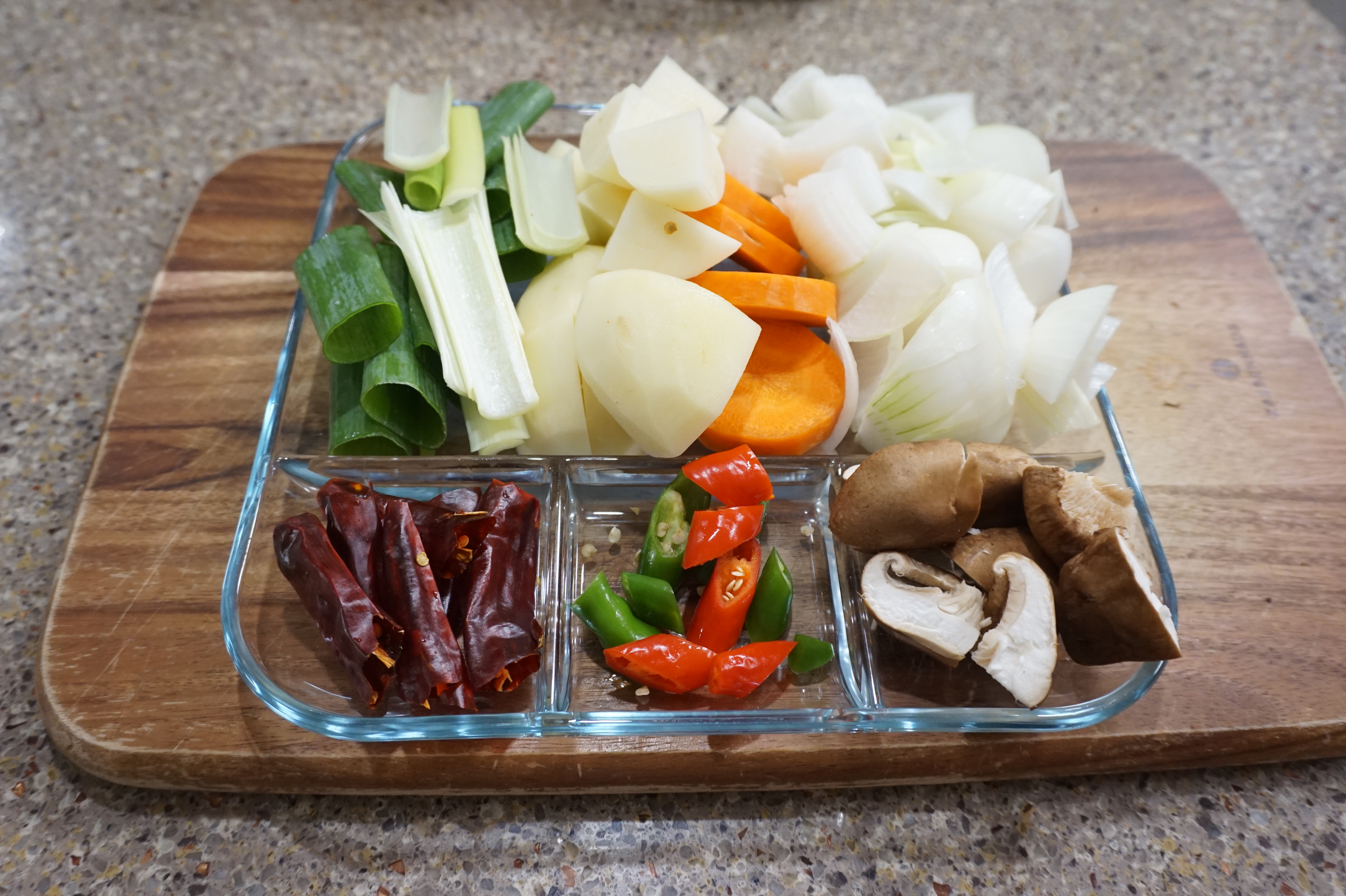 토막닭 1.5kg, 감자 2개, 양파 1.5개, 당근 1/3개,
