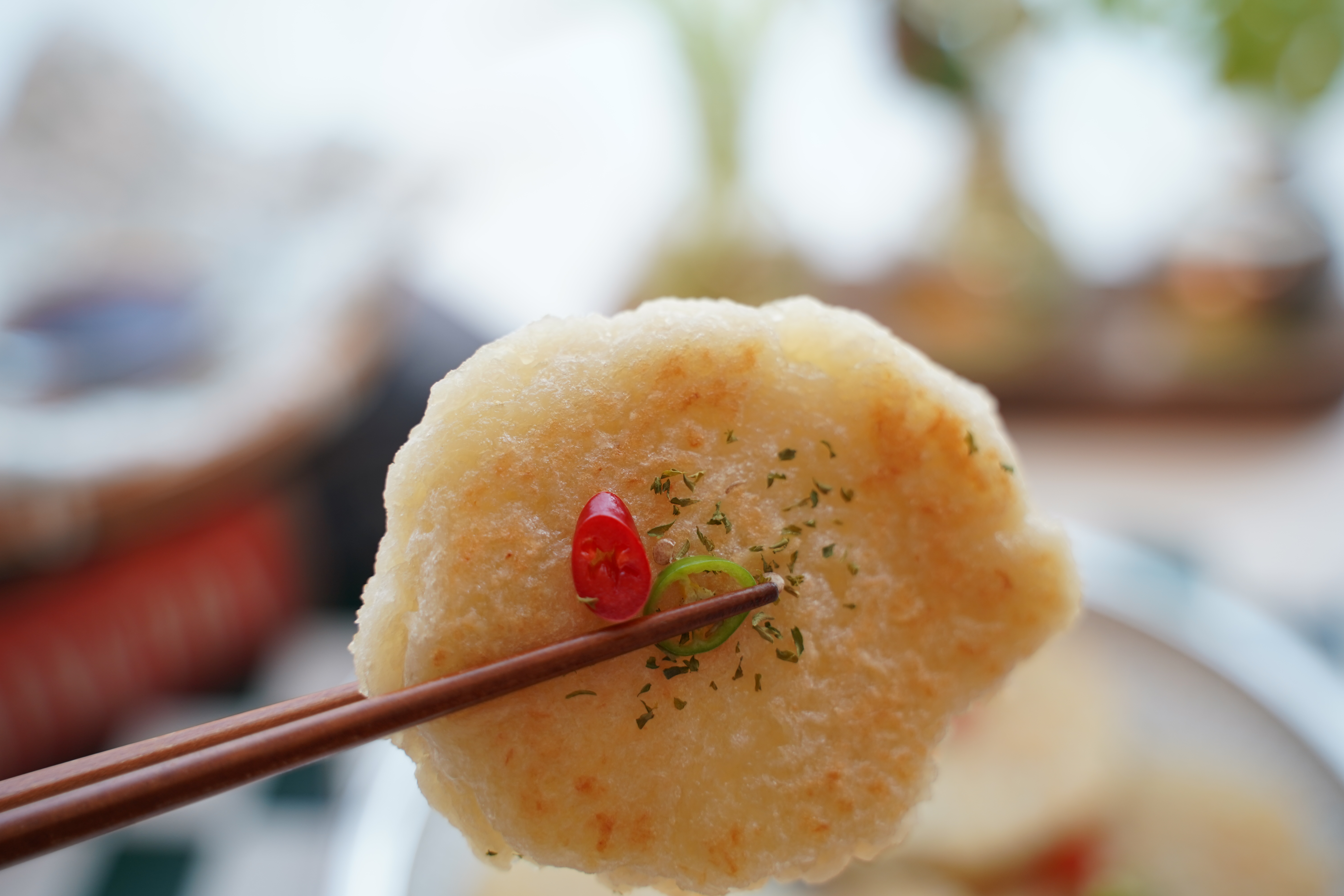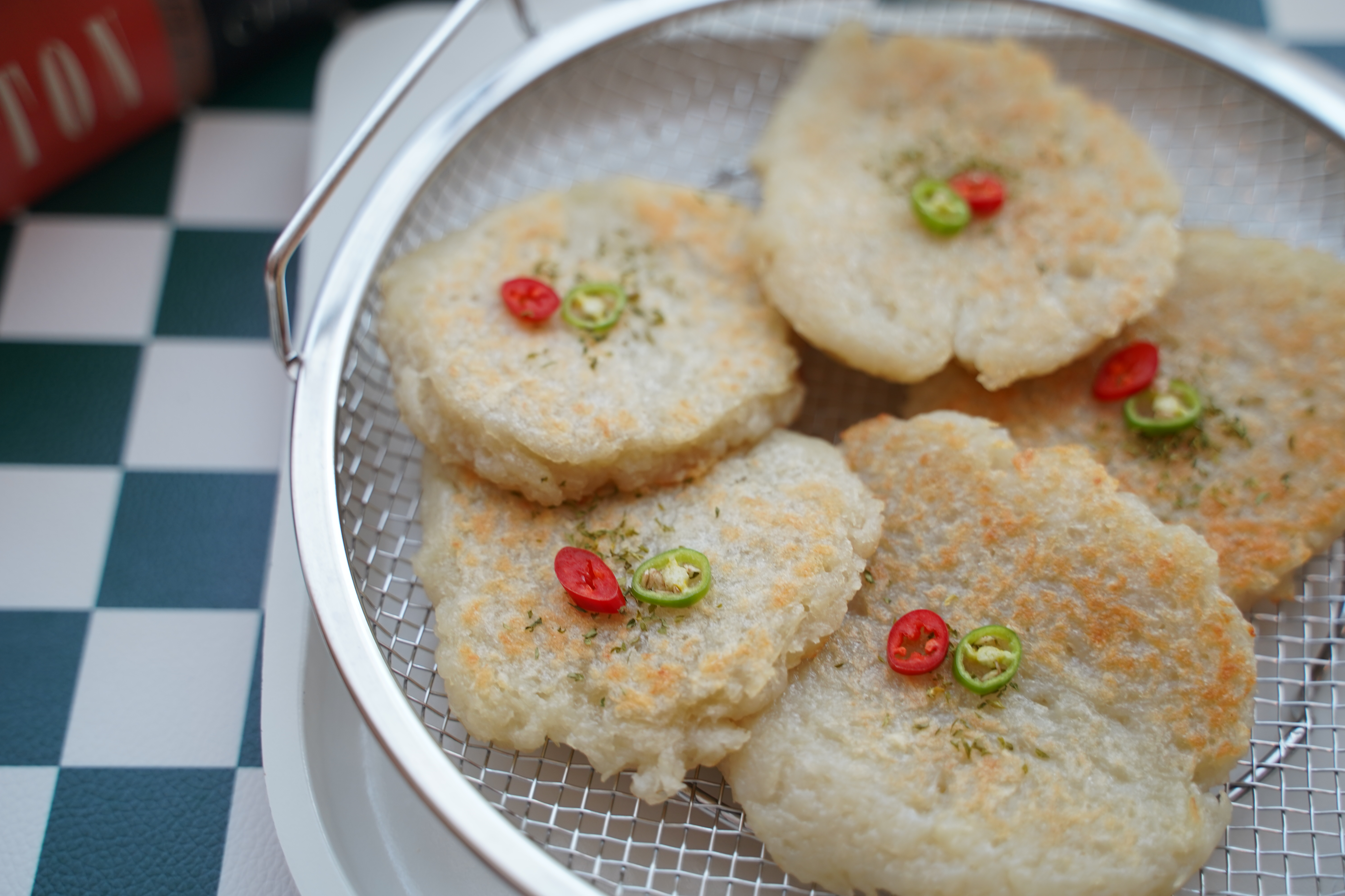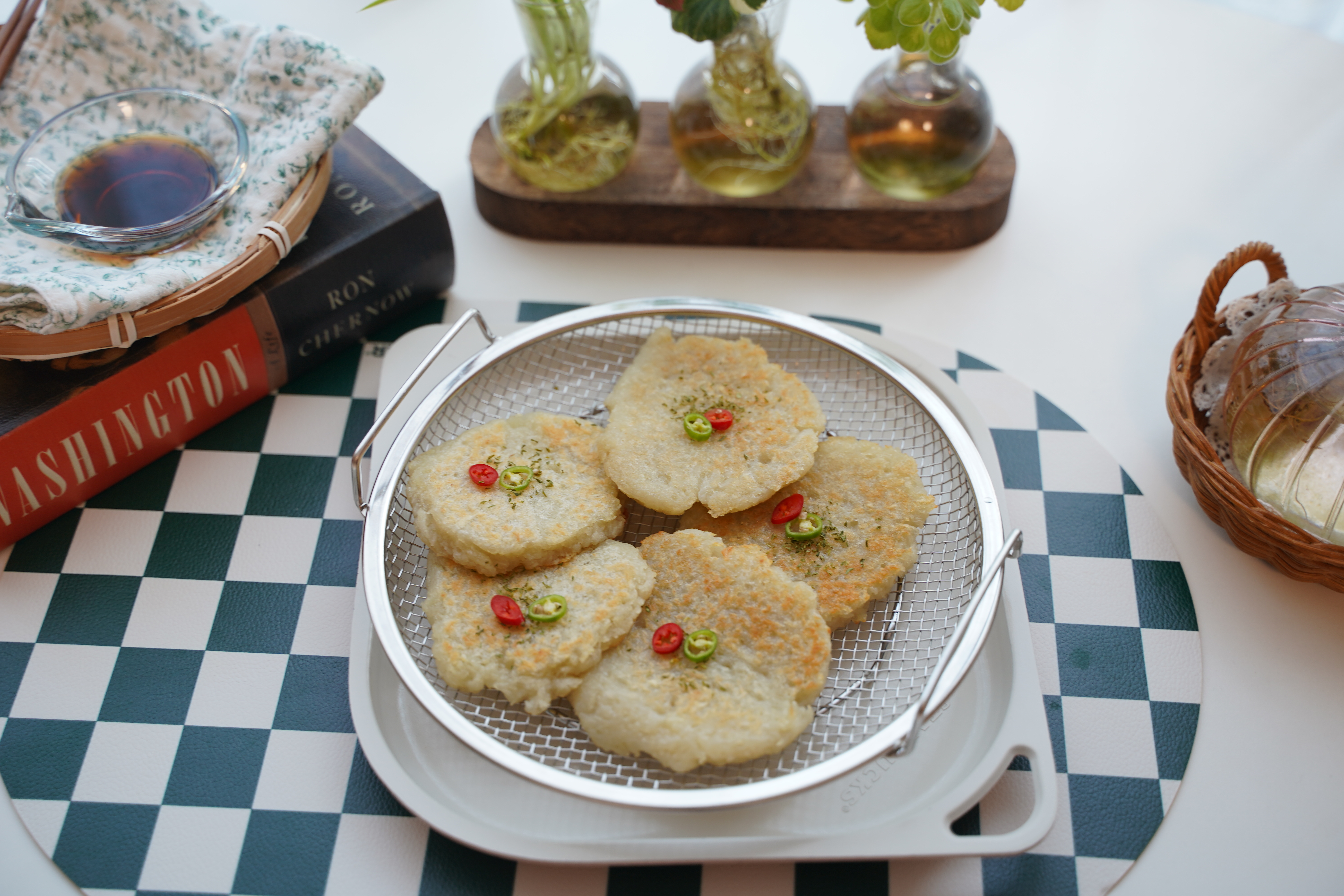 튀김망에 올려 한 김 식히면 더 바삭해지고, 고명으로 파슬리나 송송 썬 고추 올려 포인트를 주었어요.