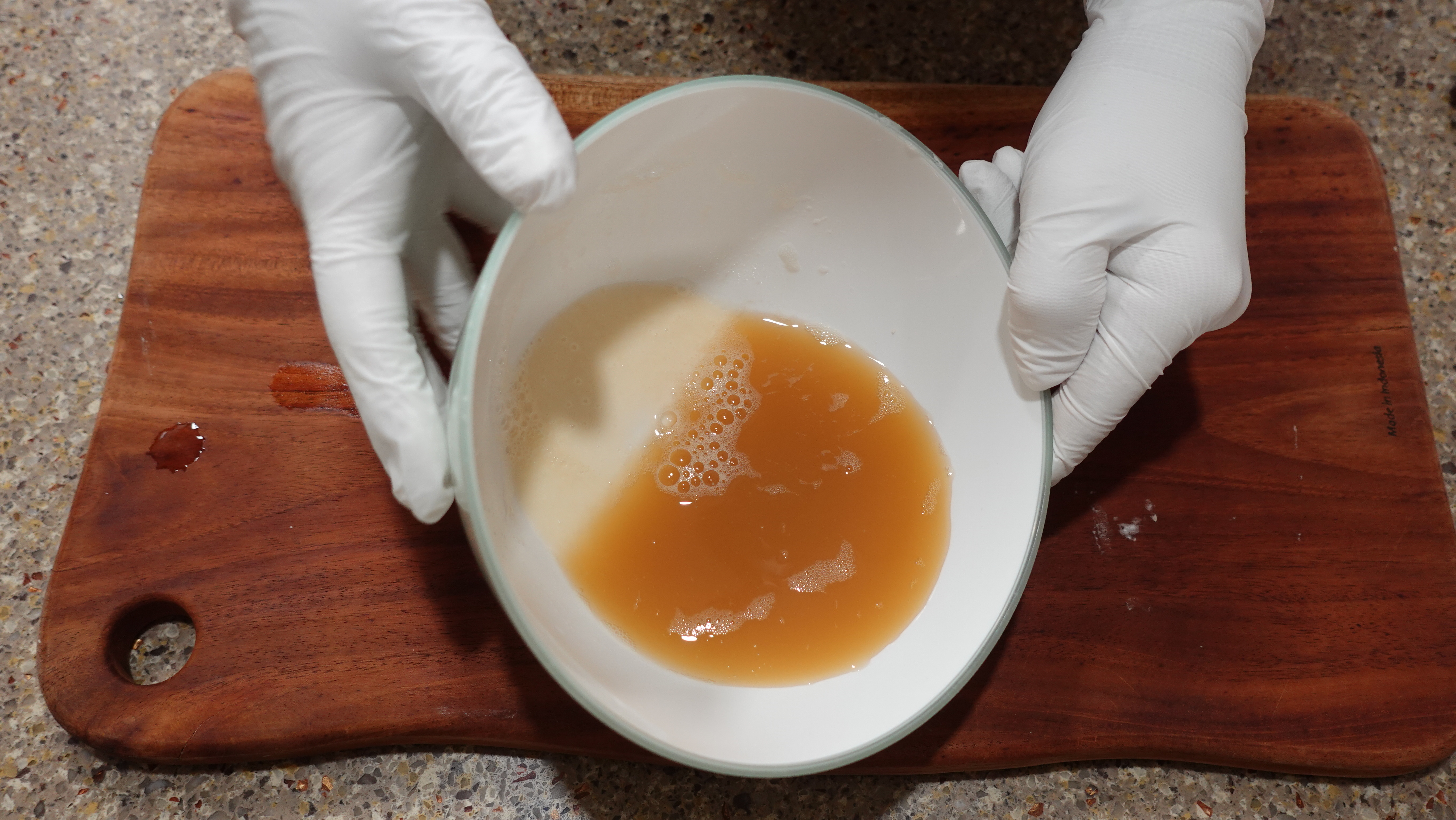 잠시 두면 바닥에 전분이 가라앉는데, 이 전분을 반죽에 넣으면 쫀득한 식감을 살리는데 중요한 역할을 해요.