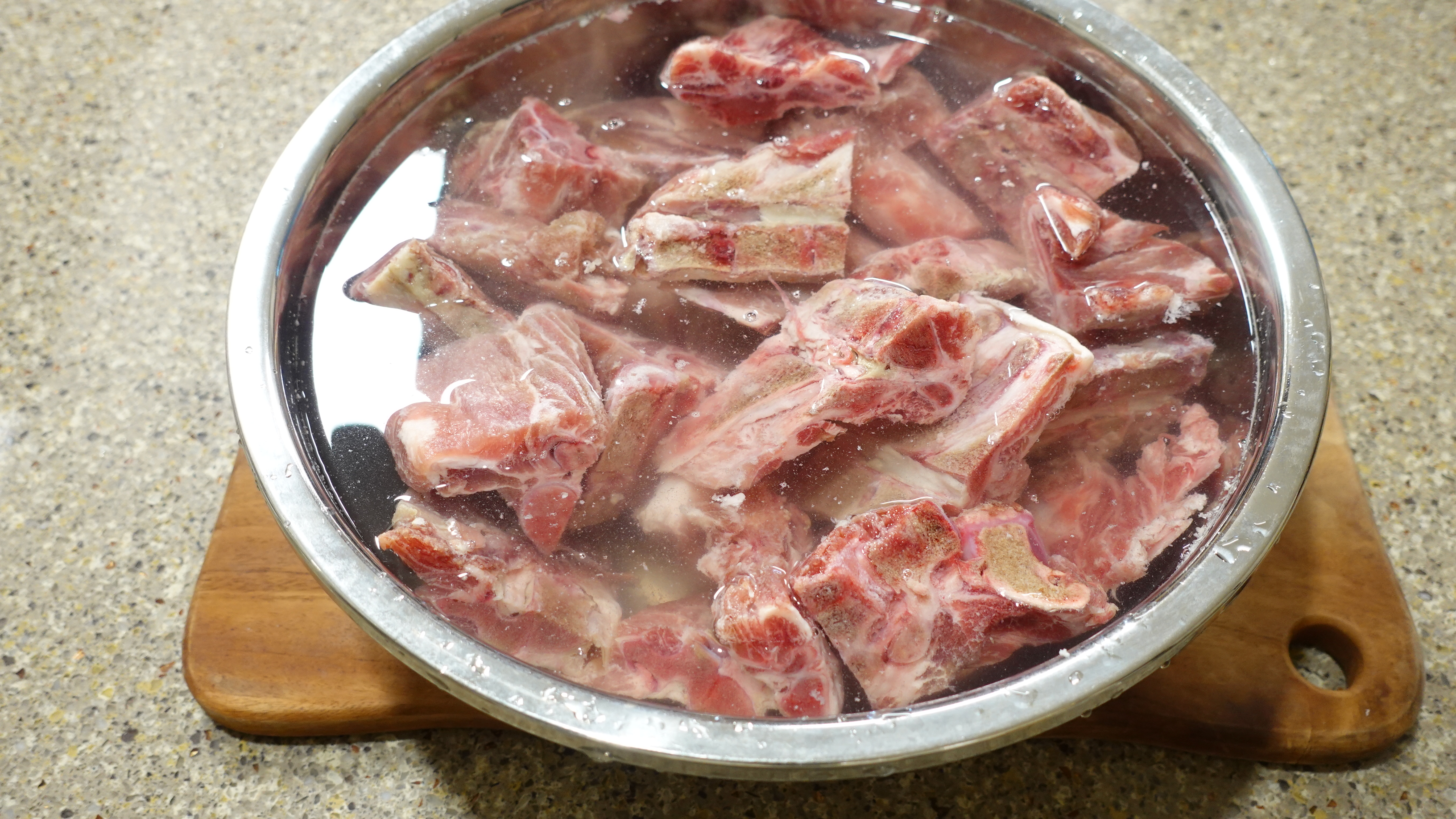 등뼈는 찬물에 1시간 담가 핏물을 제거합니다.
