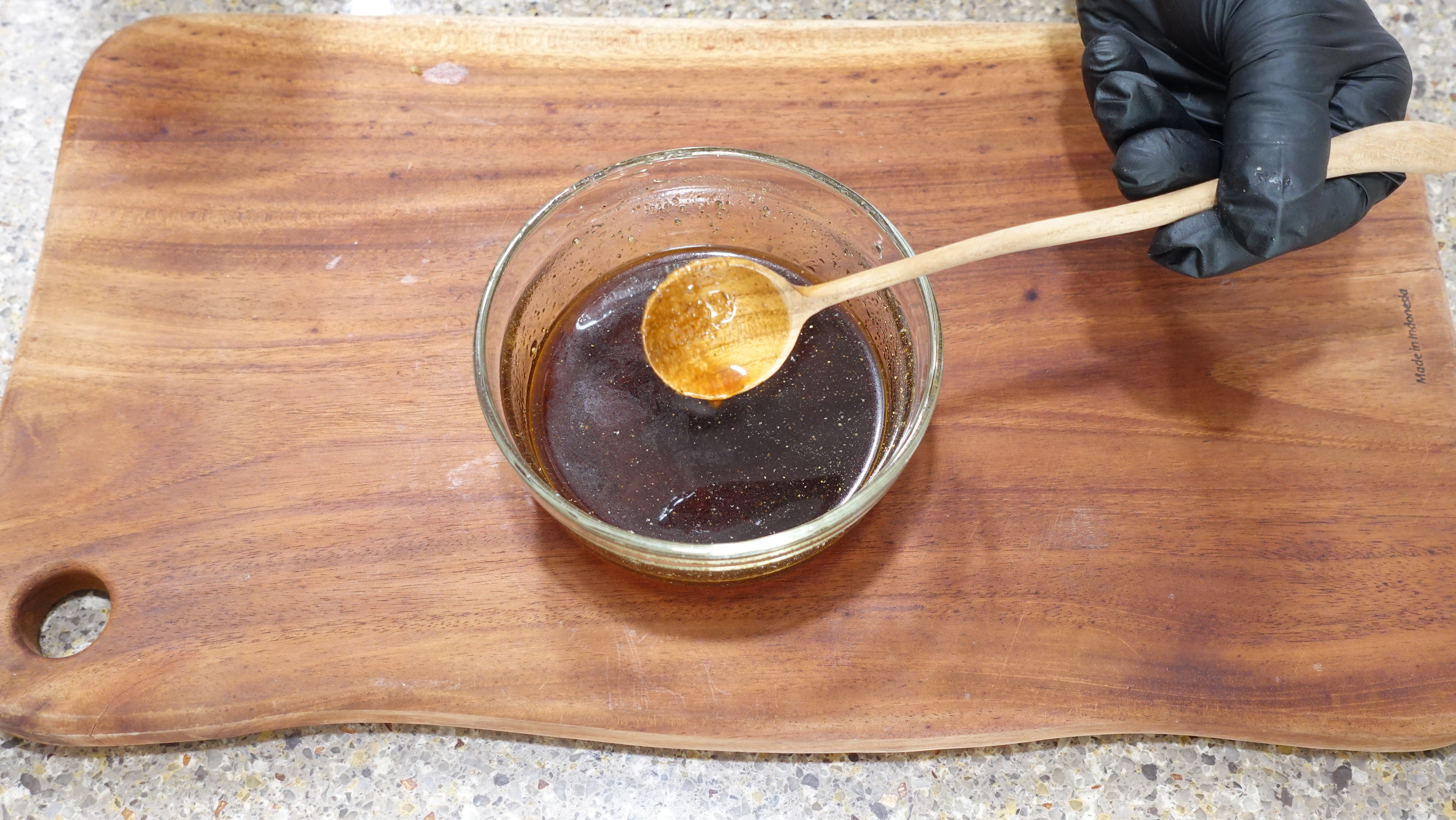 볼에 진간장 3T, 치킨스톡 1T, 물 4T, 설탕 2T, 꿀 1.5T, 후추 약간 넣고 골고루 섞어 간단한 찹스테이크 소스를 만들어요. 치킨스톡이 들어가면 감칠맛이 확 살아나요.