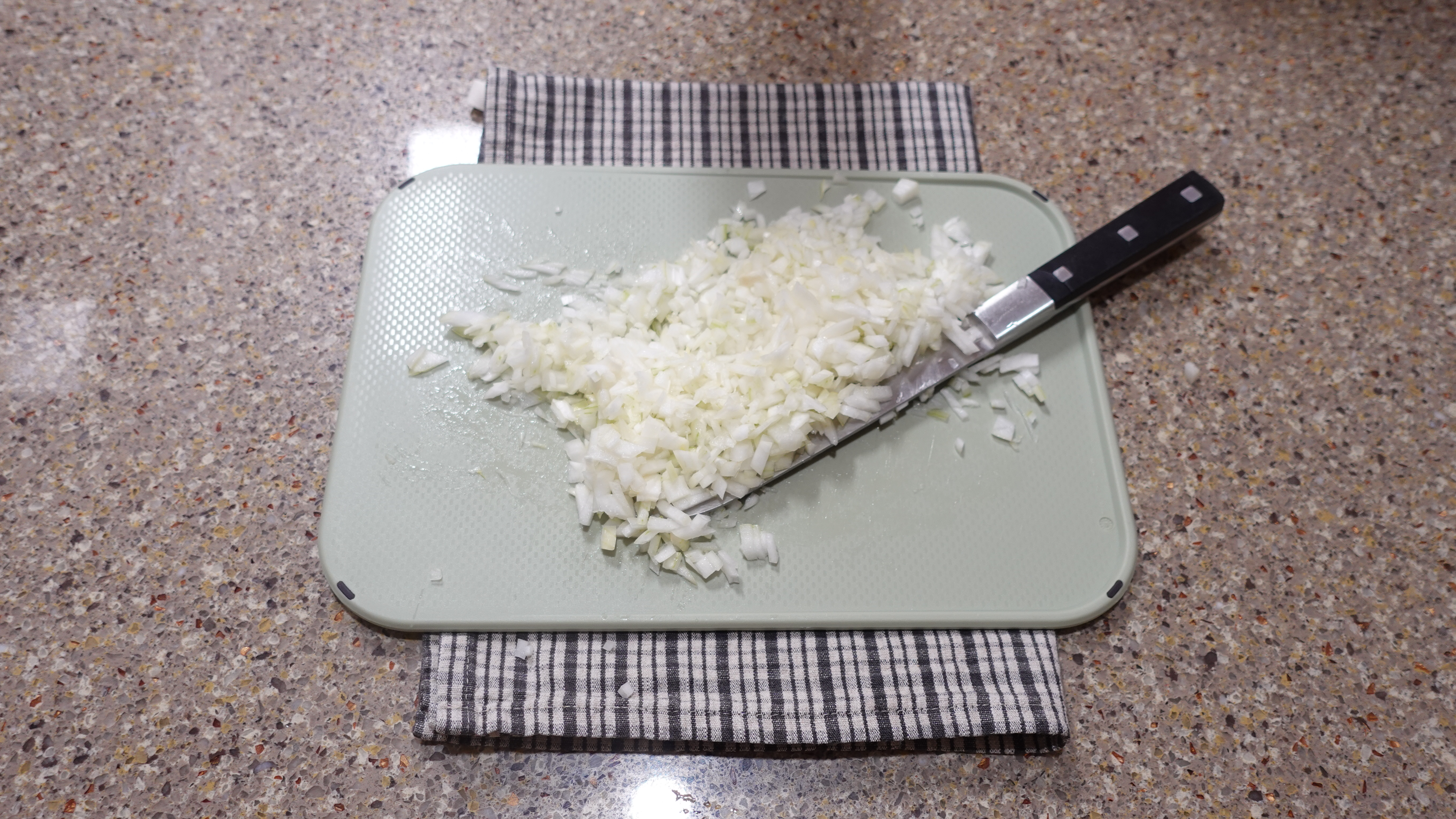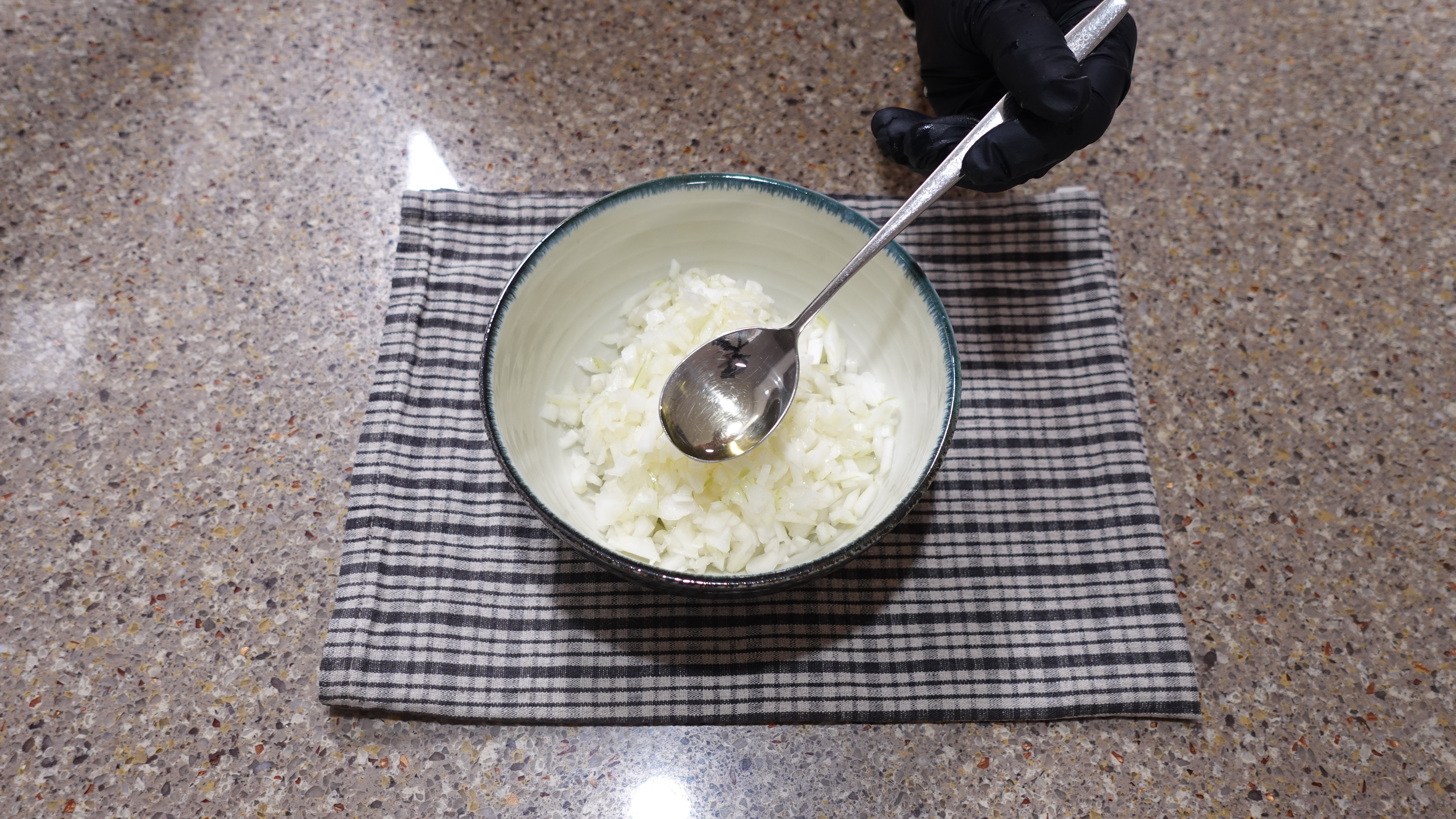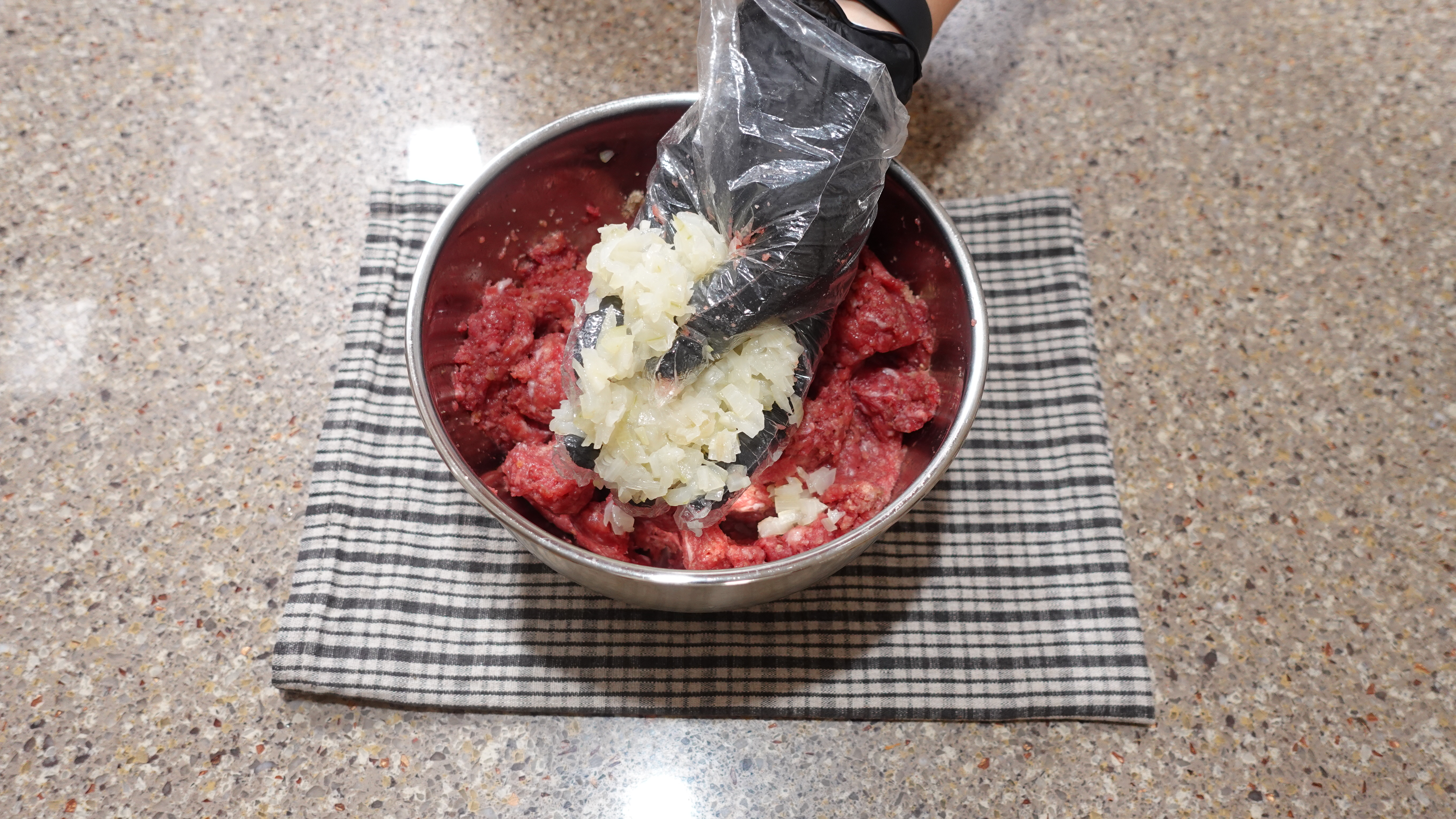 양파를 그냥 넣으면 수분이 생겨 고기 반죽이 풀어져요.