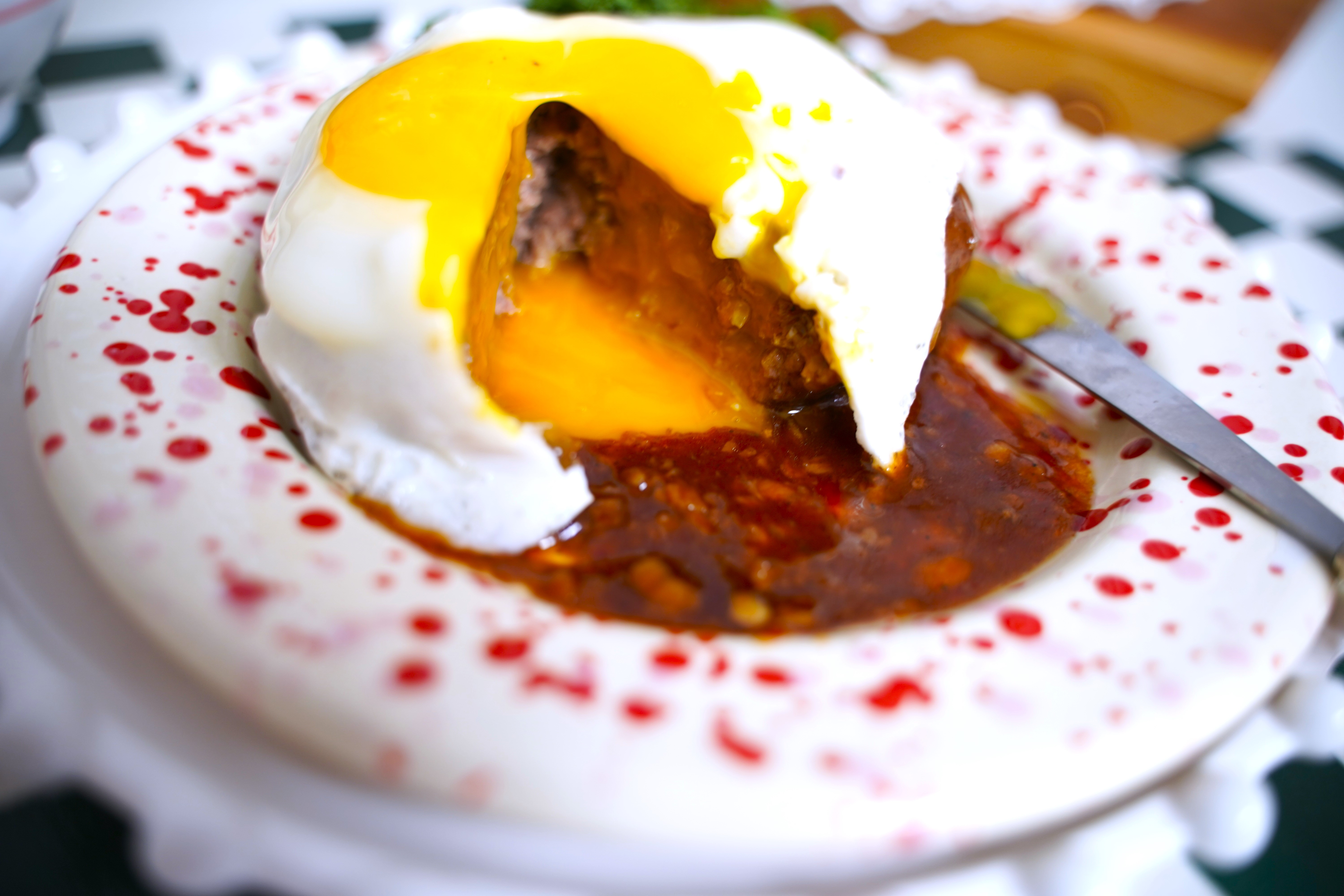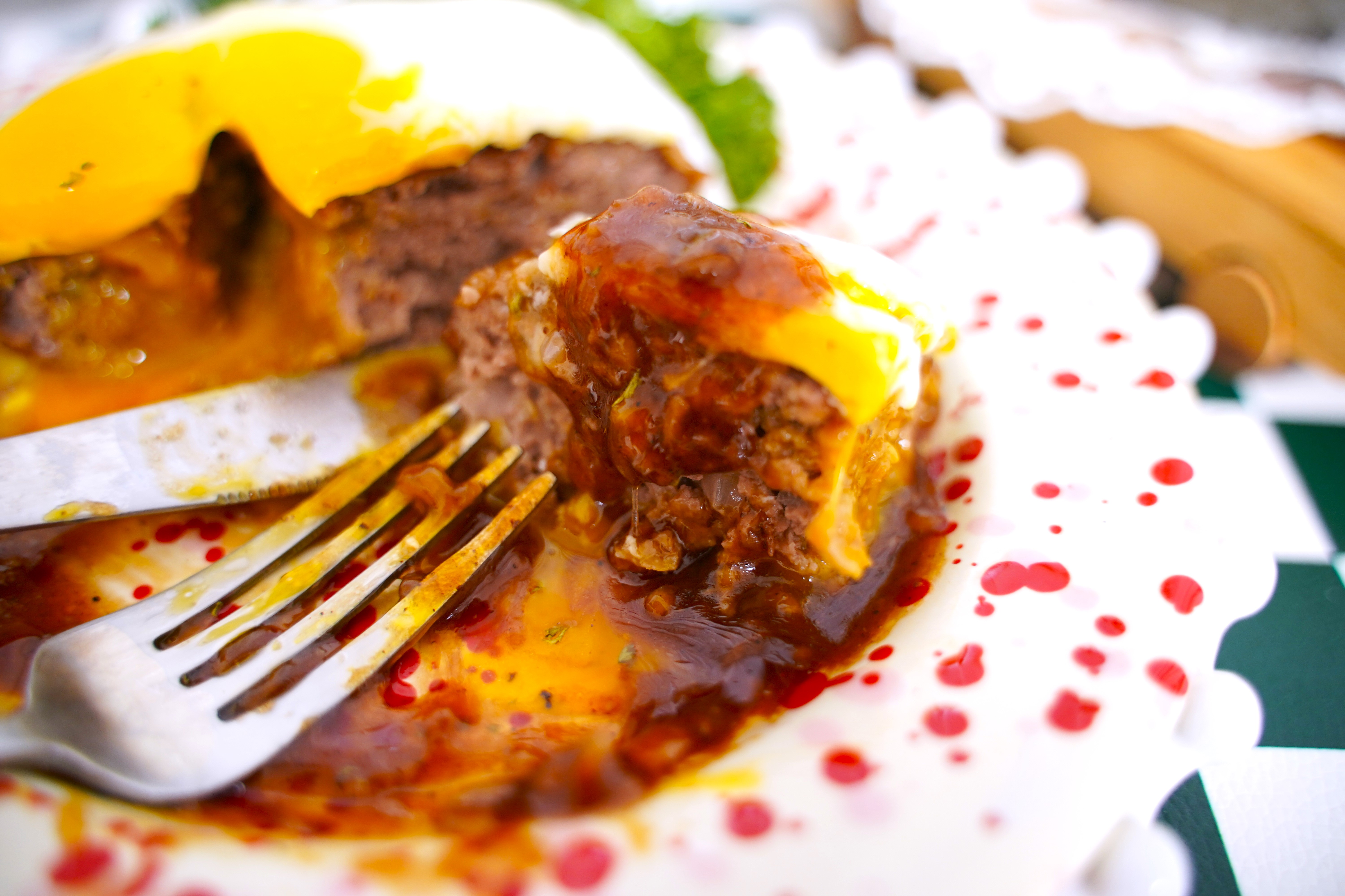 고기 위에 소스를 듬뿍 끼얹고 달걀 반숙 프라이, 채 썬 양배추 곁들이면 근사한 홈스토랑 한 끼 즐길 수 있어요.