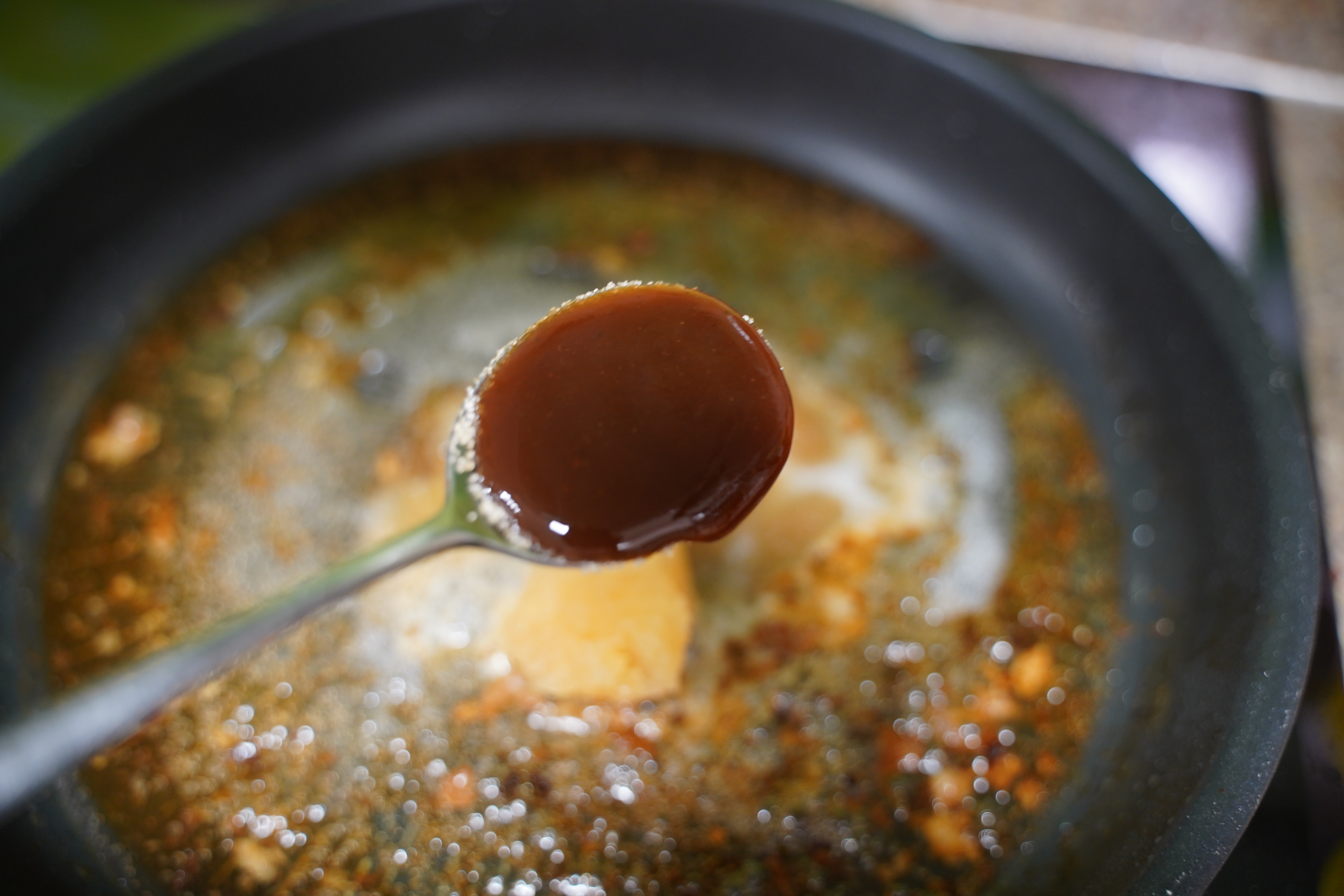 고기 굽던 팬 그대로 사용했어요.