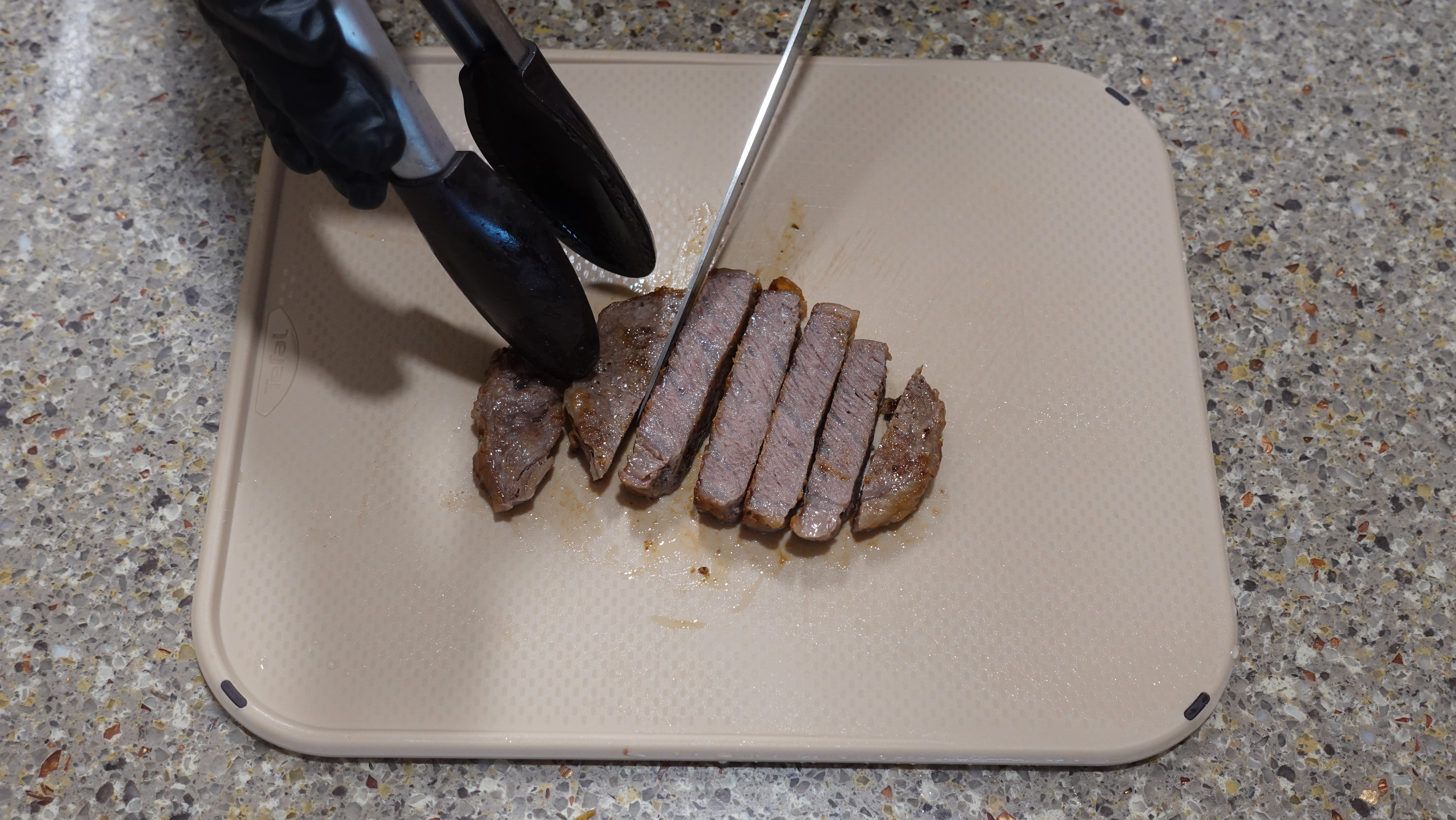 5분 레스팅 후 썰어보니 속까지 잘 익은 웰던 스테이크!