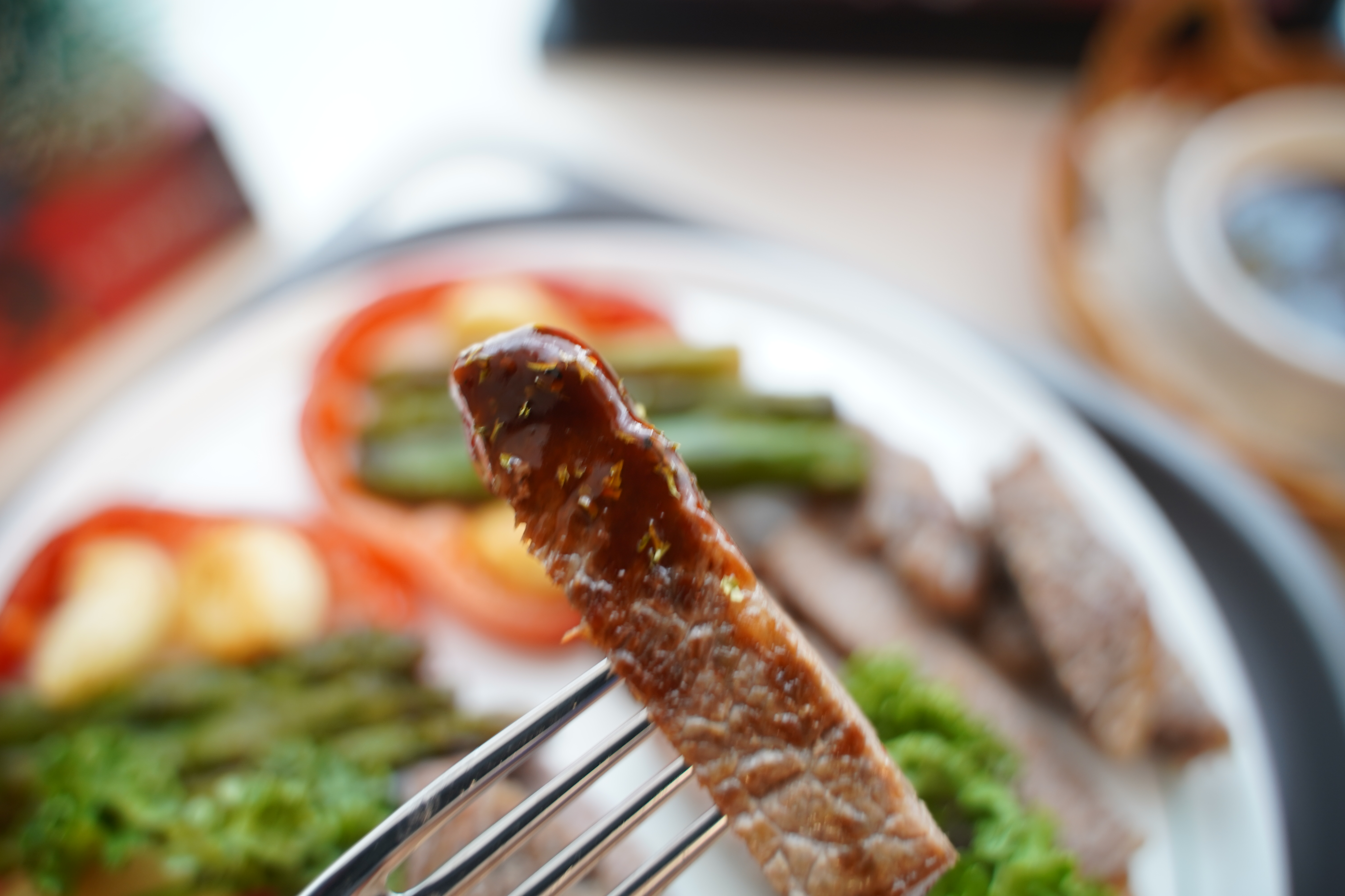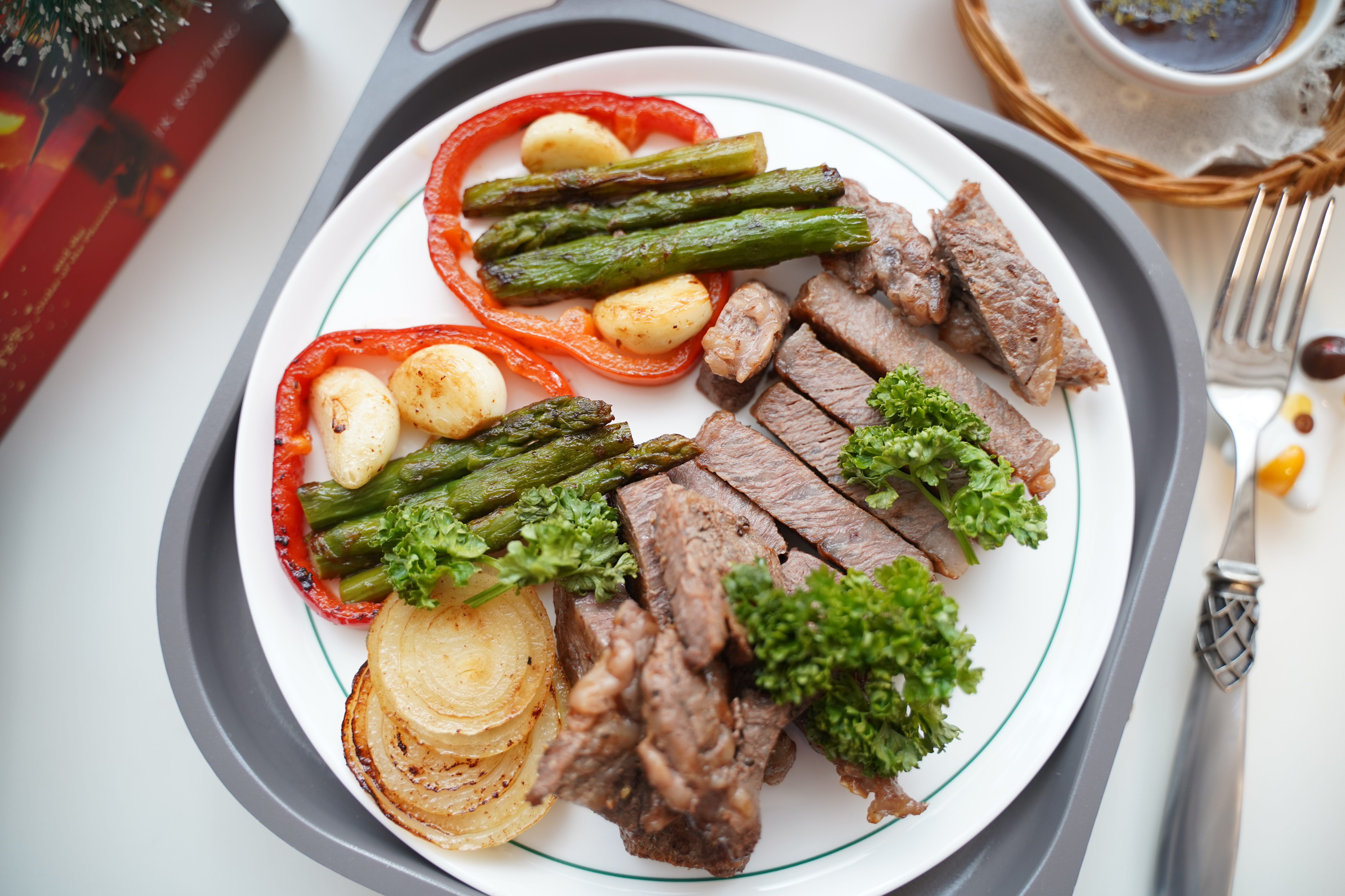 양파, 피망, 아스파라거스 외에도 구운 감자, 브로콜리, 버섯, 방울토마토를 곁들이면 훨씬 근사해요.